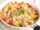 - Coloca el tofu y ajo en un recipiente y agrega aceite de oliva, y las especies y deja marinar por 30 mins o hasta que los garbanzos esten cocinados.